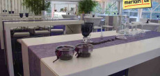 > Über 300 lfdm. Messewände in 3m-Höhe, wahlweise mit fester, weißer Rückwand oder mit Stoffen bespannt