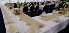 > Bankett-Tische rund Durchmesser 1,50m, Höhe 0,74m (für ca. 8 Personen)